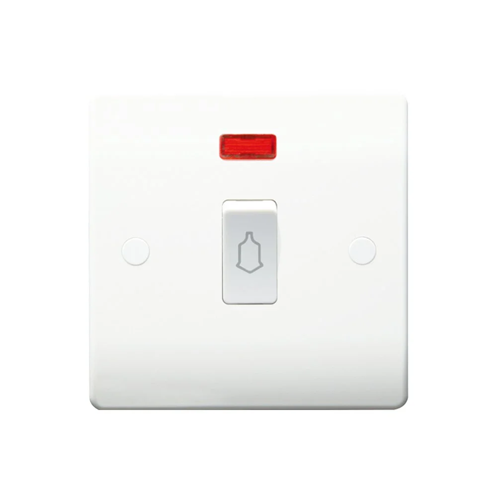 White Plastic 10A Bell Switch with lamp description and neon indicator